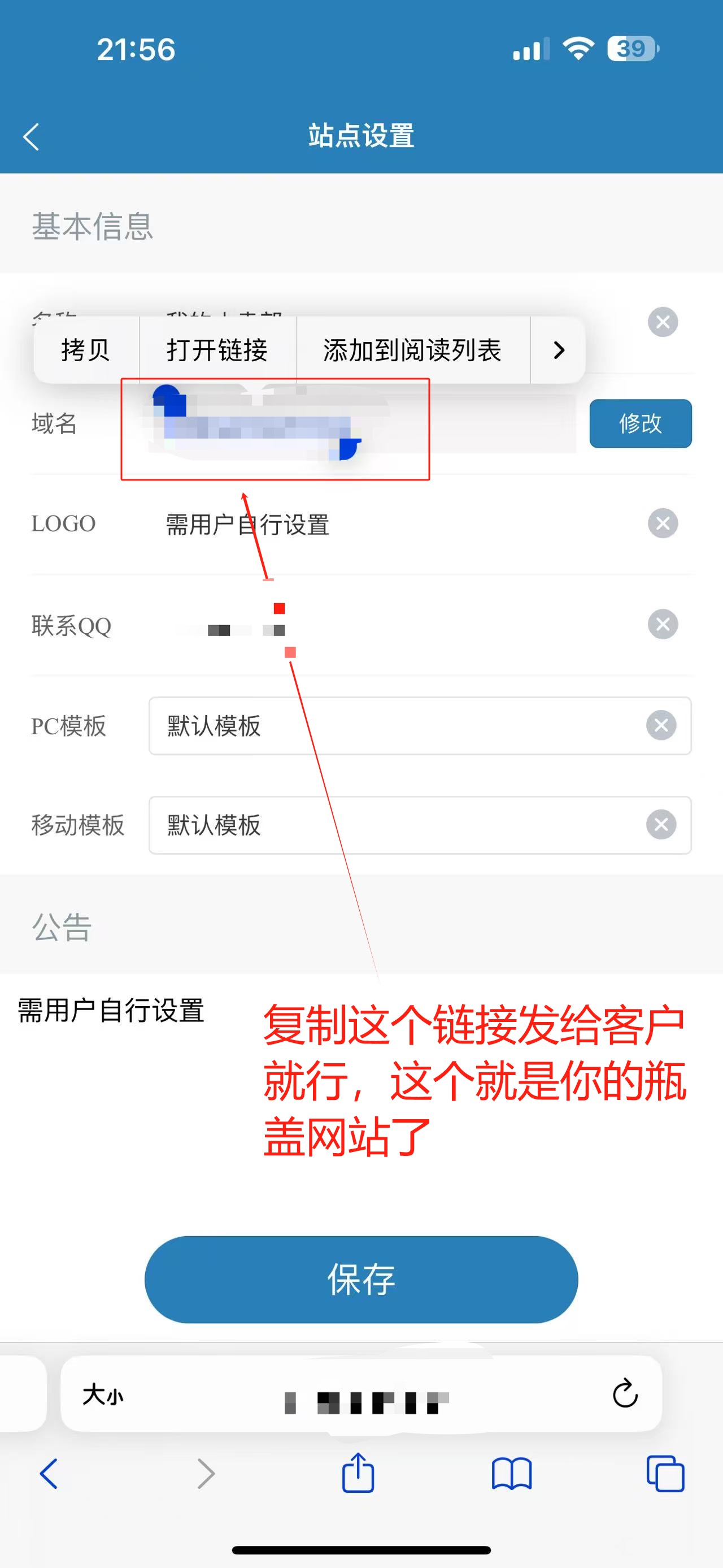 就可以把你的网站链接发给客户购买了